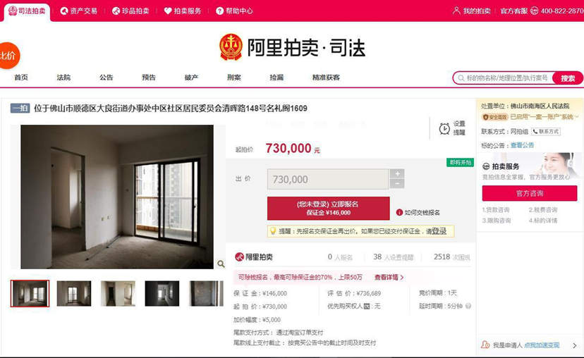 本次系法院对推介物业进行的首次公开网络拍卖,单价约1.5万元/㎡,四处住宅均为毛坯,可自由设计装修。
