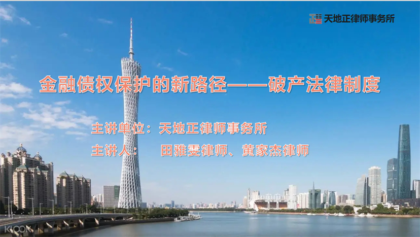 2025年3月5日下午,天地正律师所应邀为佛山华兴银行开展《金融债权保护的新路径--破产法律制度》专题讲座。该行业务骨干约20人参加。天地正律师所执行主任丁学平律师带队,田雅雯律师、黄家杰律师担任主讲。